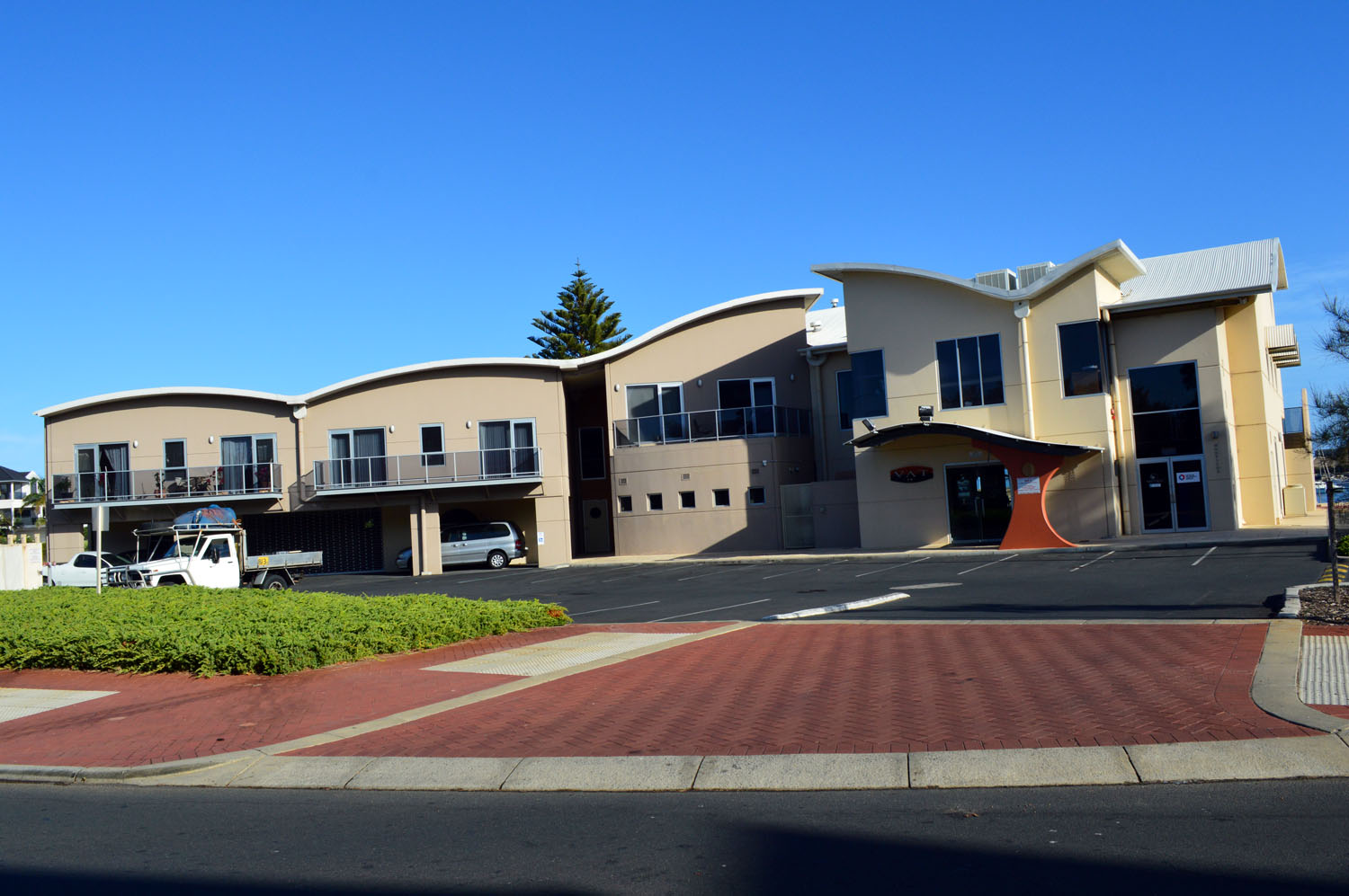 The development included the award winning VAT 2 restaurant, 3 unit dwellings, underneath parking and an expansive office area. Fit out of the VAT2 and three units, were to the highest standard with close attention to the interior designer’s vision. The curved roof won an MBA award for excellence in roofing.