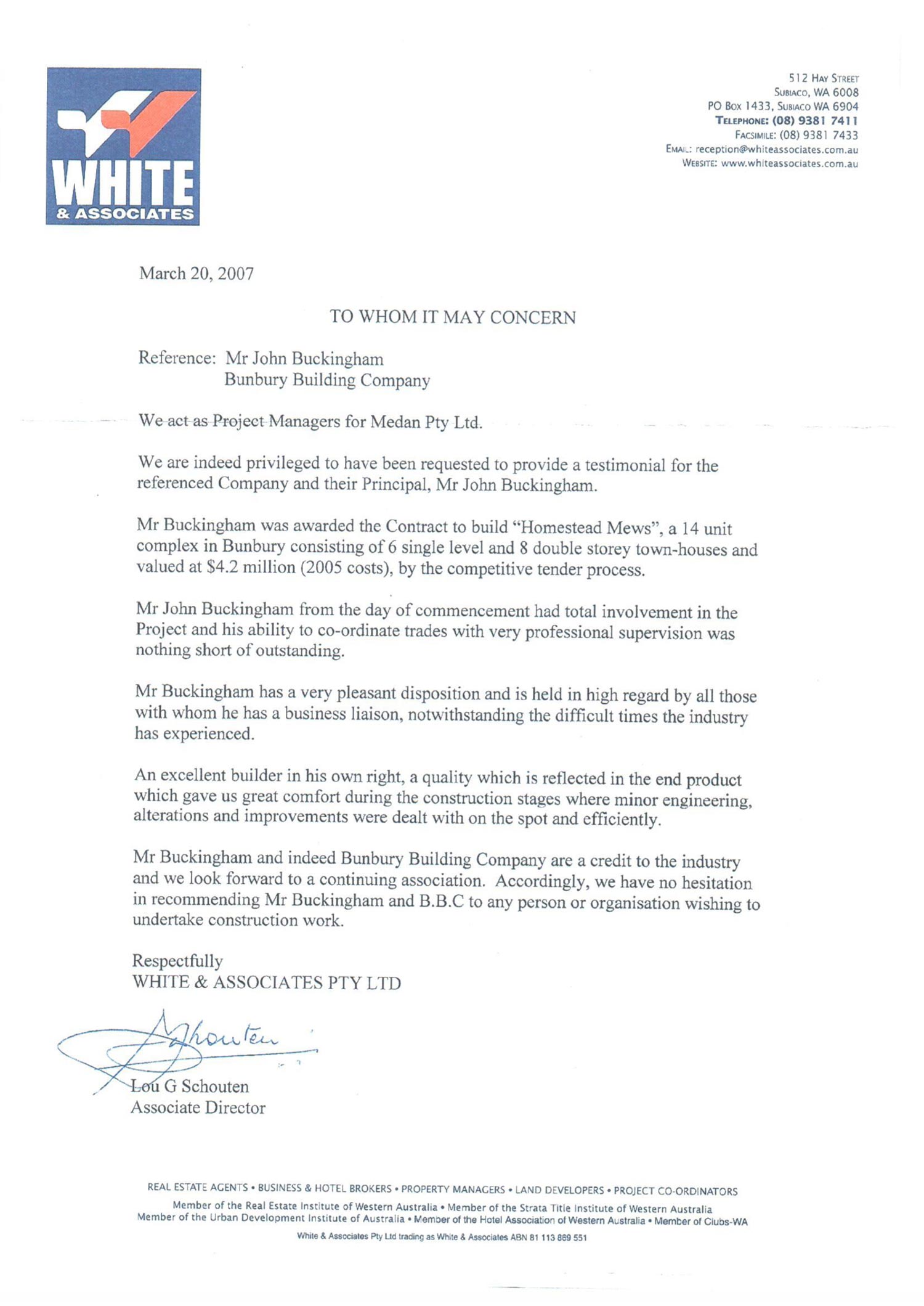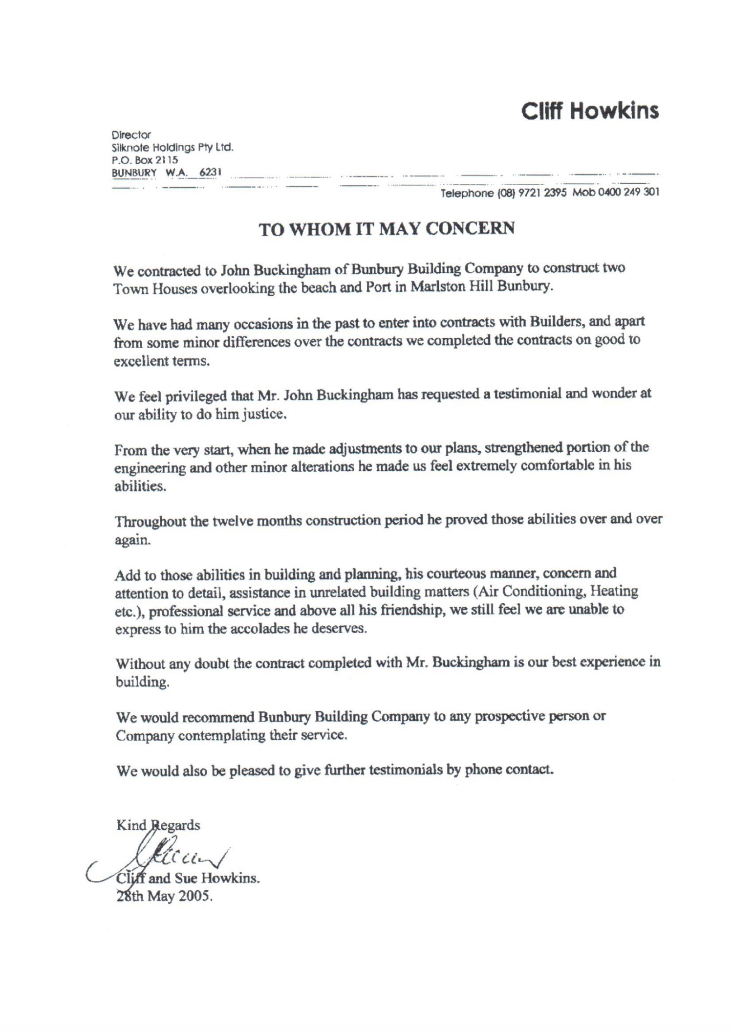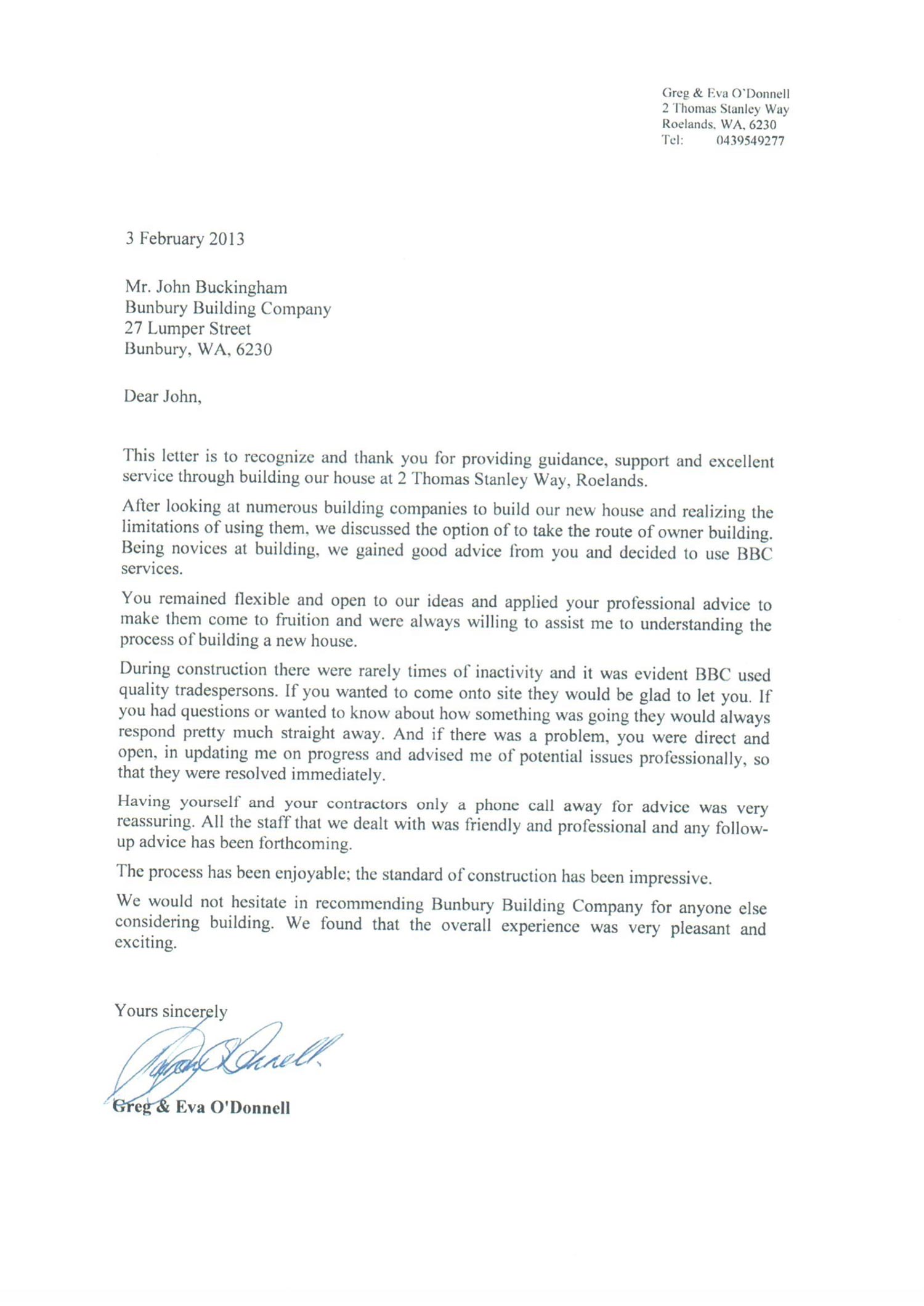 “John dealt with our interior designer, architect, engineer and other consultants with a high degree of honesty and professionalism.”
